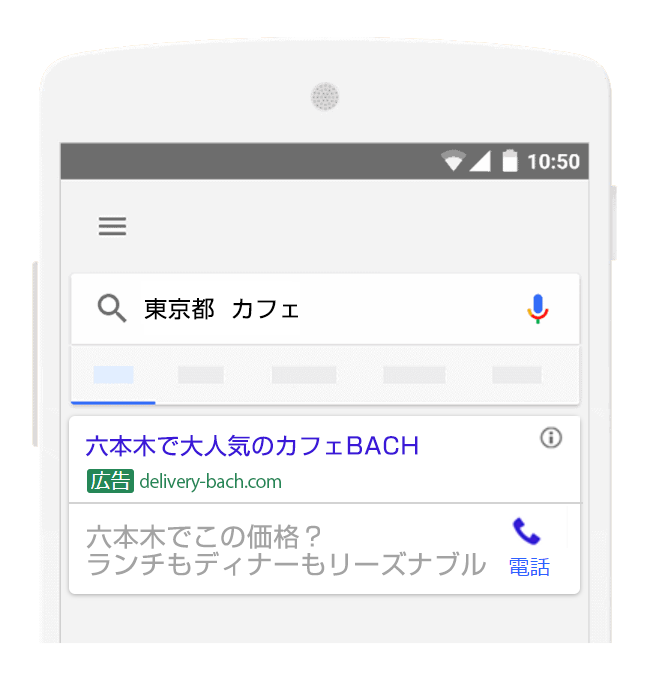 Googleの検索広告は、広告主様の商品やサービスをユーザーが、Googleで検索したときに、検索結果ページに表示されます。